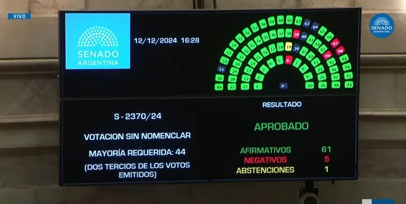 Fue al cabo de una sesión cruzada por la polémica, convocada a partir de la detención en Paraguay del senador nacional Edgardo Kueider, que está con arresto domiciliario en el país vecino luego de que le encontraran más de 200 mil dólares sin declarar. La votación resultó con 65 votos afirmativos, 5 negativos y una abstención.