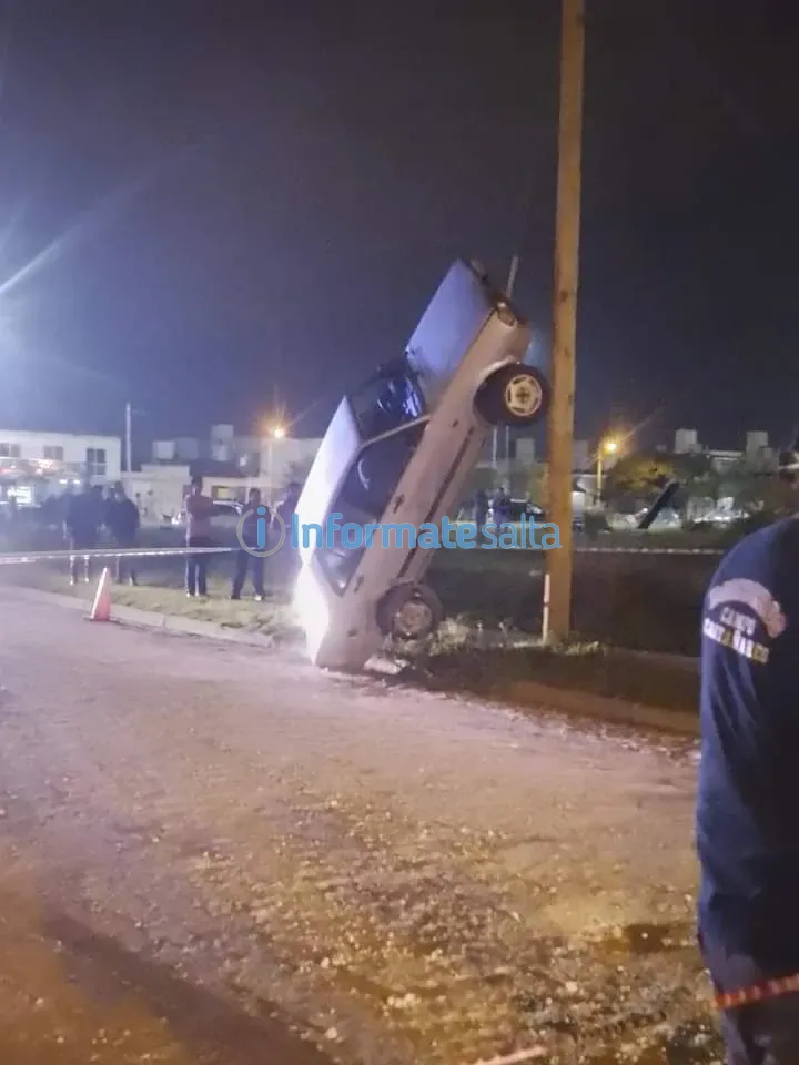 Pasadas las 20 de ayer, los vecinos del barrio el Huaico se encontraron con un auto Volkswagen tendido de forma vertical a un poste de luz, sostenido por cables. El conductor aparentemente estaba en estado de ebriedad al momento del incidente.