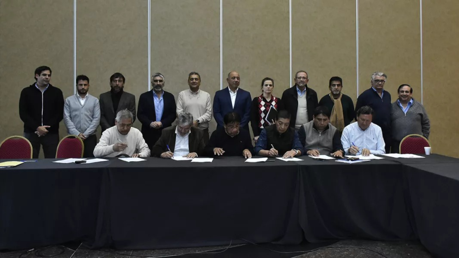 El acuerdo fue encabezado por los ministros Sergio Camacho, Roberto Dib Ashur y Nicolás Demitrópulos, junto a funcionarios de las áreas de Salud, Educación y la Secretaría General de la Gobernación. Desde el Ejecutivo destacaron que el acuerdo se logró mediante el diálogo y con responsabilidad fiscal.